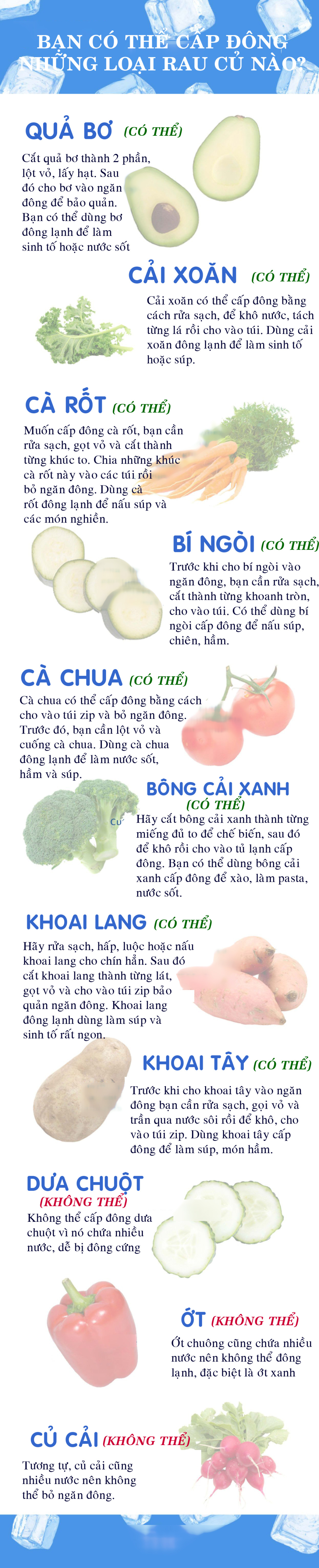 Những loại rau củ quả nào có thể trữ đông?