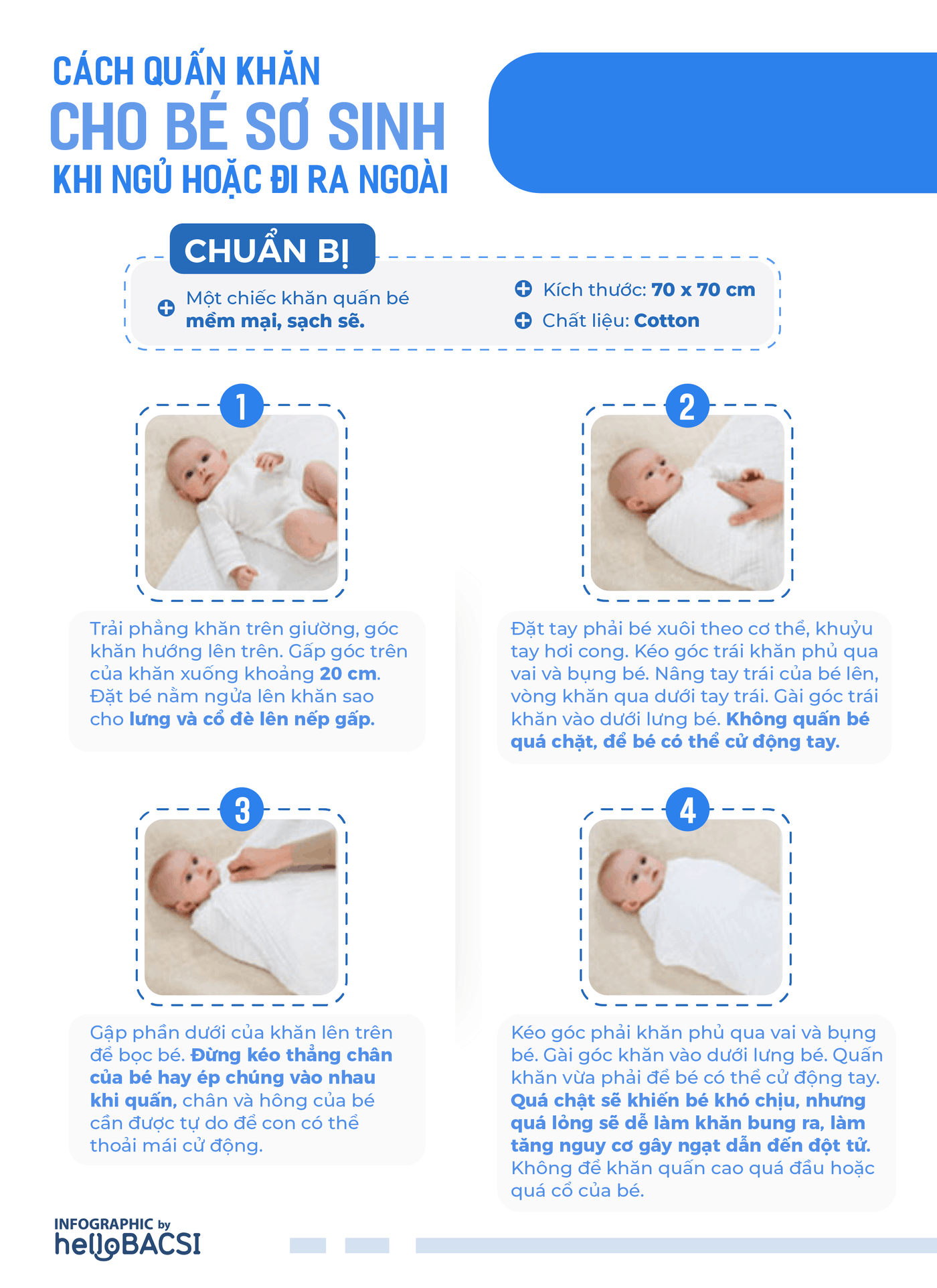 - Việc quấn khăn quá chặt có nguy cơ gây ra đột tử, đặc biệt là quấn khăn chặt nhưng cho bé ngủ ở tư thế nằm sấp